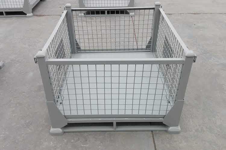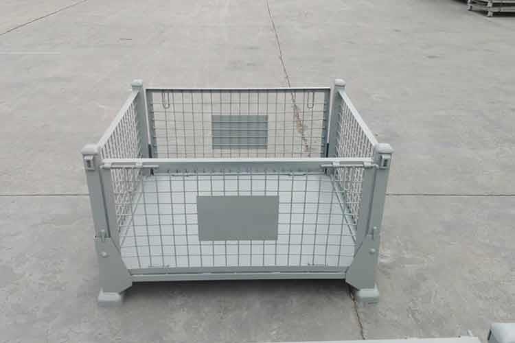 折叠式金属网箱是现代仓储物流环节中储存、周转的器具。折叠式金属网箱底部以U型槽钢焊接补强,使结构更坚固,在使用时操作简便、周转便捷、堆放整齐,便于管理。与此该金属网箱主要用于机械、汽车、家电、轻工、电子等行业,能耐酸耐碱、耐油污,无味。